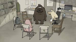 - Unos animales antropomórficos se encuentran en una sesión de terapia.